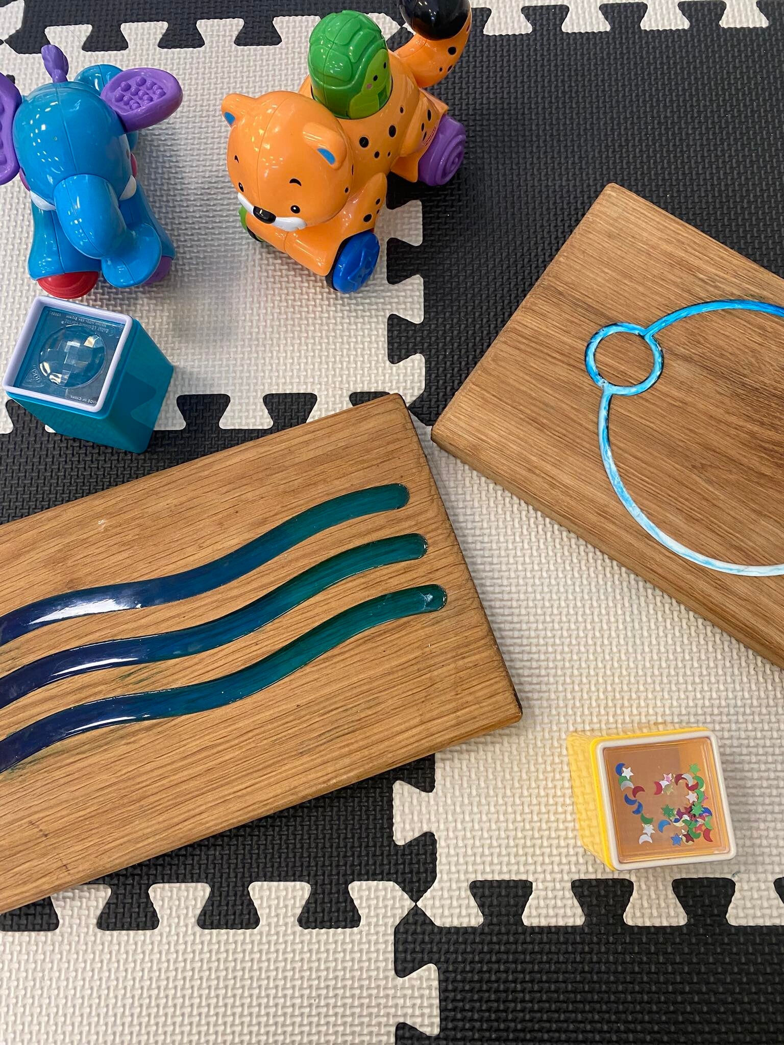 have created these beautiful wooden boards, which are filled with resin from Heilan & Sloth. Such a fun and sensory oriented product.